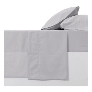Cearceaf gri din bumbac percal cu elastic 185x200 cm Cotton Percale – Bianca