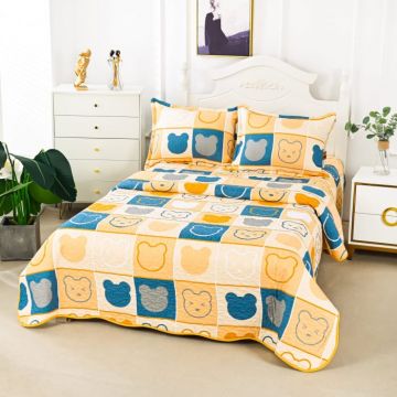 Cuvertura Pentru Pat Dublu 3 Piese de Lux, din Bumbac Finet Premium, Albastru