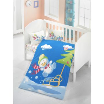 Lenjerie de pat pentru copii verde din bumbac pentru pătuț 120x150 cm Christmas Fairground – Belle & Boo