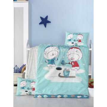 Lenjerie de pat pentru copii roz-turcoaz din bumbac pentru pat de o persoană 140x200 cm Lalama – Good Morning