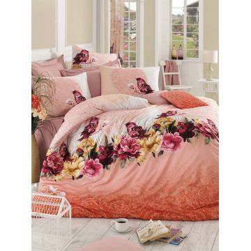 Lenjerie de pat dubla Super King (EU) (IT), Çalıkuşu - Pink, Pearl Home, Bumbac Ranforce