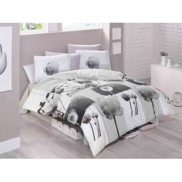 Lenjerie de pat dubla Super King (EU) (IT), Plume - Grey, Pearl Home, Bumbac Ranforce