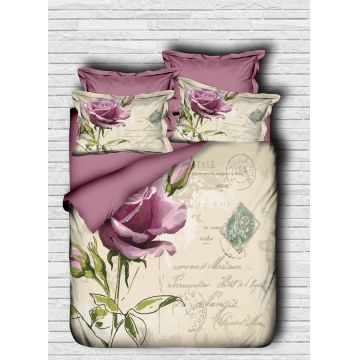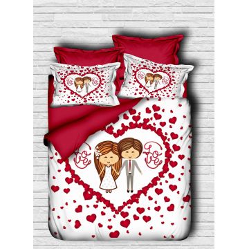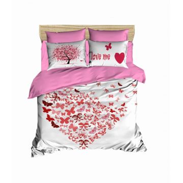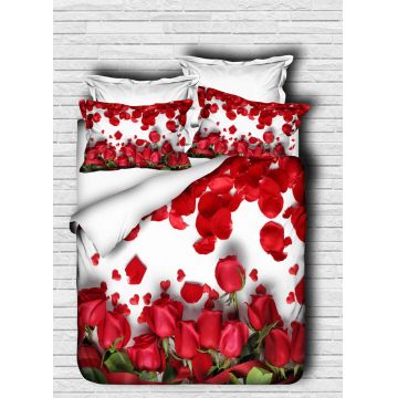 Lenjerie de pat pentru doua persoane, Pearl Home, 421, print 3D, amestec bumbac, 4 piese, alb/rosu