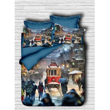 Lenjerie de pat dubla King (IT), 3 piese, 3D6, Pearl Home, Poliester Satinat