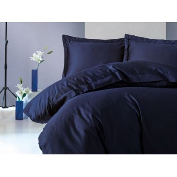 Lenjerie de pat dubla, 4 piese, 100% bumbac satinat, Cotton Box, Premium Elegant, bleumarin