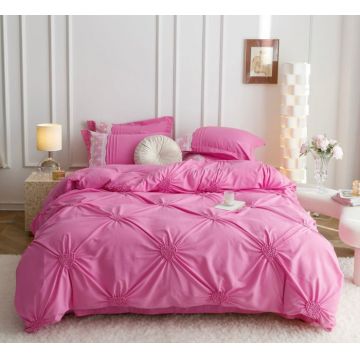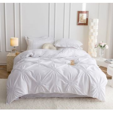 Lenjerie Pat Dublu Brodata cu Pliuri , 6 Piese, Bumbac Finet, Cearceaf Elastic