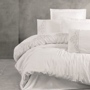 Lenjerie de pat dubla, Nilda - Light Grey, Şaheser, Bumbac