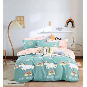 Lenjerie de pat pentru o persoana 2 piese, Magic Unicorn, Eponj Home, 65% bumbac/35% poliester
