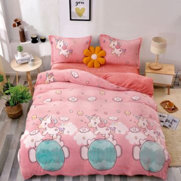 Lenjerie de Pat Finet 3D cu 2 Fete, 6 Piese, Pat 2 Persoane, Unicorn