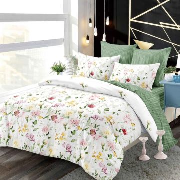 Lenjerie de pat dubla, Spring - White, EnLora Home, 65% bumbac/35% poliester