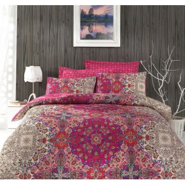Lenjerie de pat dubla, Sage - Red, Fuchsia, Cozy Home, Bumbac Ranforce