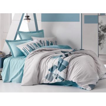 Lenjerie de pat pentru o persoana 2 piese, Helsinki - Petrol, EnLora Home, Bumbac;Poliester