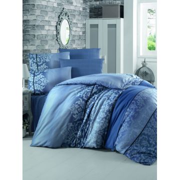 Lenjerie de pat pentru o persoana (EU) (IT), Savoy - Blue, Victoria, Bumbac Ranforce