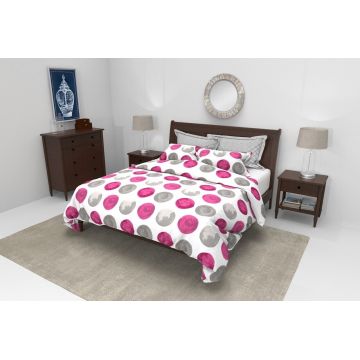 Set Alcam 2 perne microfibra 50x70 cm si pilota matlasata 220x200 cm, Pink Flamingo