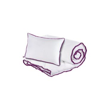 Set Alcam perna microfibra 50x70 cm si pilota matlasata 140x200 cm, Alb/Mov