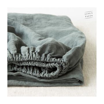 Cearșaf elastic din in Linen Tales, 180 x 200 cm, gri închis