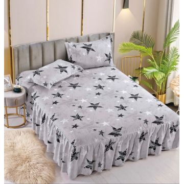 Husa de Pat cu Elastic din Catifea + 2 Fete de Perna, Moale si Eleganta