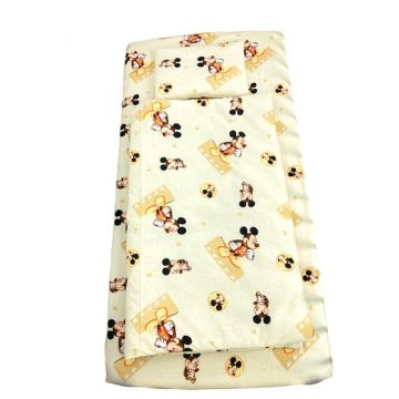 Lenjerie de pat 3 piese cu cearceaf plapumioara si pernuta slim 120x60 cm Croitoria Noastra Mickey pe galben