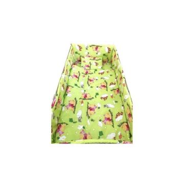 Lenjerie patut cu 5 piese si aparatori Maxi 140x70 cm Croitoria Noastra Winnie pe verde